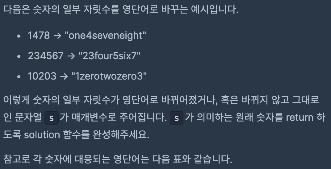 코딩테스트 연습 - 숫자 문자열과 영단어
